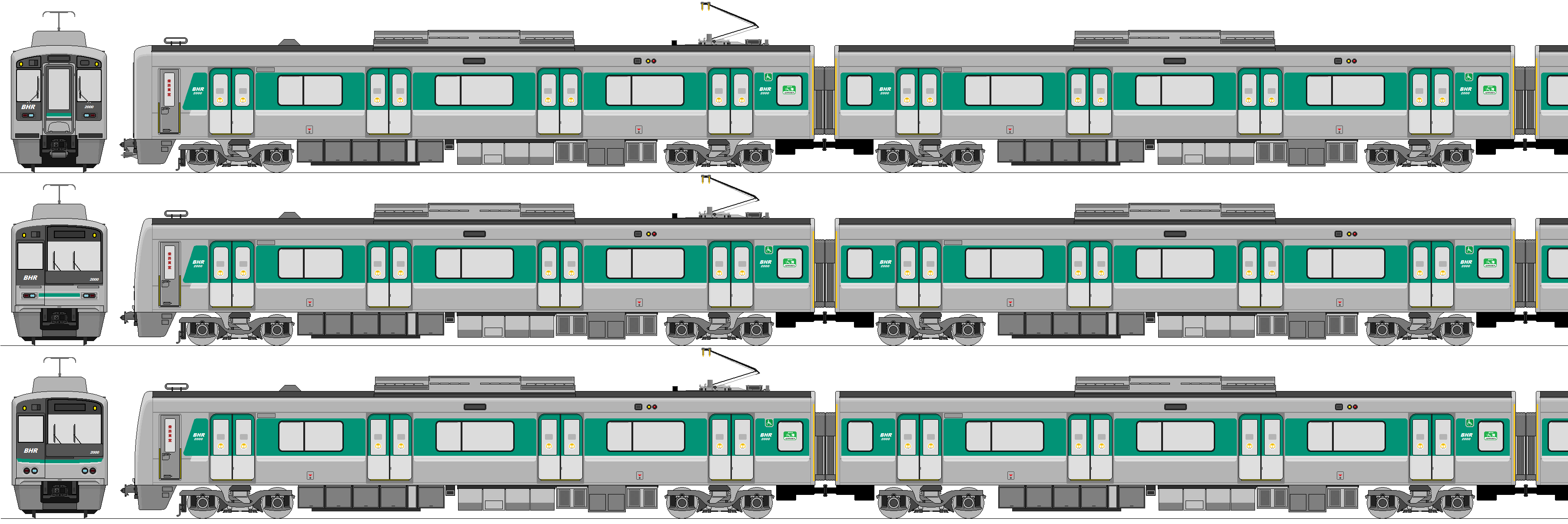 武州高速鉄道を走行する車両を紹介する。 全車両20m車、8両編成である。 ↑武州高速鉄道2000系 2000年製造(前期車) 2010年(後期車) シンプルかつ、機能的な車両を目指して製造された車両。 上の前期車(1次車)はJRのE231系をベースに、4連7本を製造。 真ん中、中期車(2、3、4次車)はJRのE231系をベースの8連固定編成で製造。 2本しか居ない下の後期車(5次車)はE231系をベースにしつつ、一部はJRE233系をベース。 側面もシンプルだが、先頭車両の部分の処理はアルファベットの「B」や「R」をイメージしたと帯の処理がされている。 塗装も乗り入れ会社に併せてエメラルドグリーンが採用された。