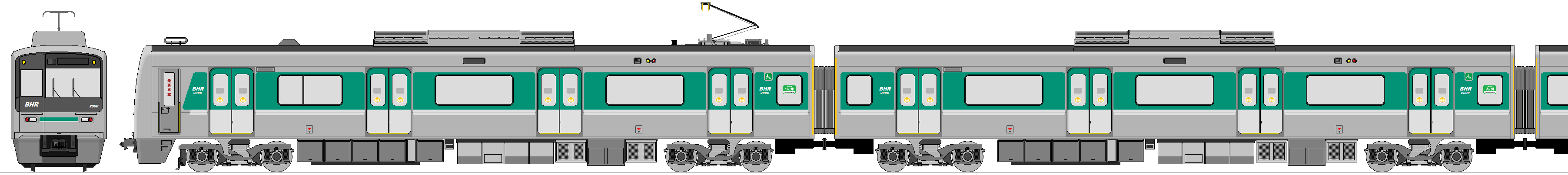 武州高速鉄道を走行する車両を紹介する。 全車両20m車、8両編成である。 ↑武州高速鉄道2000系 2000年製造 シンプルかつ、機能的な車両を目指して製造された車両。JRのE231系をベースに製造。 側面もシンプルだが、先頭車両の部分の処理はアルファベットの「B」や「R」をイメージしたと帯の処理がされている。 塗装も乗り入れ会社に併せてエメラルドグリーンが採用された。