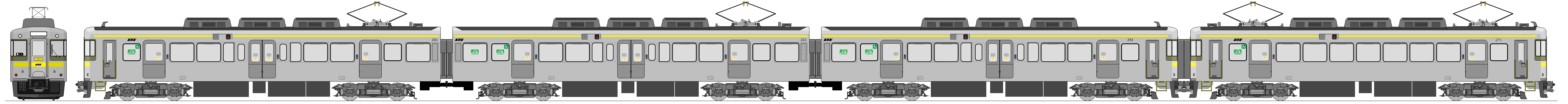 加賀急行交通を彩る車両を紹介する。 ↑加賀急行交通200系 1975年製造 元々は2扉車として製造された200系は、片開扉には寒冷地特融の簡易デッキが備わり、寒さ対策をしっかりと施した車両であったが、 沿線人口の向上により、2扉では対応出来なくなり、 300系導入と同時に扉を増設、簡易デッキも撤去し、扉には開閉ボタンスイッチを用意し、それにて、寒さ対策を行う事とした。 加賀急行交通で唯一の3両編成と単行と製造された車両。 ↑加賀急行交通300系 1990年製造 加賀急行交通で初めての3扉車。前面の貫通扉を廃止し、JR205系の様なデザインでデビュー。 また新たにステンレス車体も導入など、新しいものだらけだが、制御機器は手堅く、200系でも実績のある界磁チョッパ制御とした。 初めての4連固定編成。 ↑加賀急行交通400系 2019年製造 京名電鉄65系をベースに設計されたかが急行交通のエース車両。 デザインも今までのデザインを踏襲したが、新しくVVVFインバータ制御を採用し、加賀急行交通にも新しい時代が到来した。